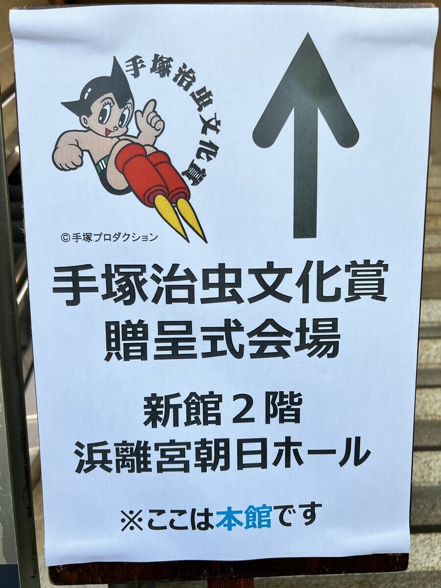 6月5日「第29回手塚治虫文化賞」のセレモニーに行った。取材だと思うでしょう? プライベートです。申し込んだらあたったので。他にもそういう同業者がいたらしく、会場で某記者に「あなたもか」と苦笑いされた。てへへ。