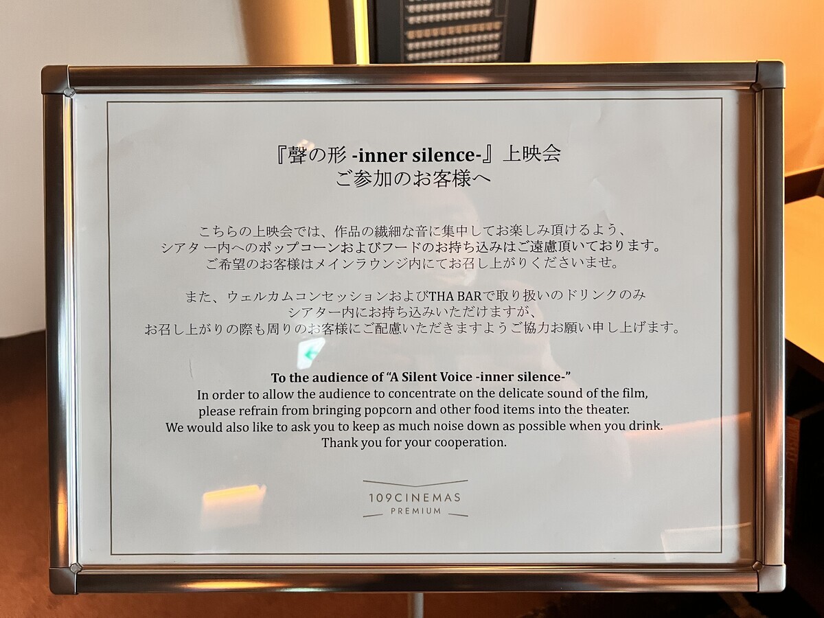 6月14日。109シネマズプレミアム新宿で開催されている「牛尾憲輔映画祭」の一環として行われた、ご本人トーク付きの『聲の形 -inner silence-』上映会に行った。これも普通にチケットを取って(なるべく「業界クン」的なムーブをしたくないんですよ、ただの木っ端ライターなので……って、そう思ってんならこんなアピールも下手にすんなよって感じか)。